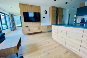 Die Wohnung wurde gerade fertiggestellt und ist bezugsbereit. Der Preis versteht sich inklusive neuer Einbauküche und maßgeschneiderter Möbel.